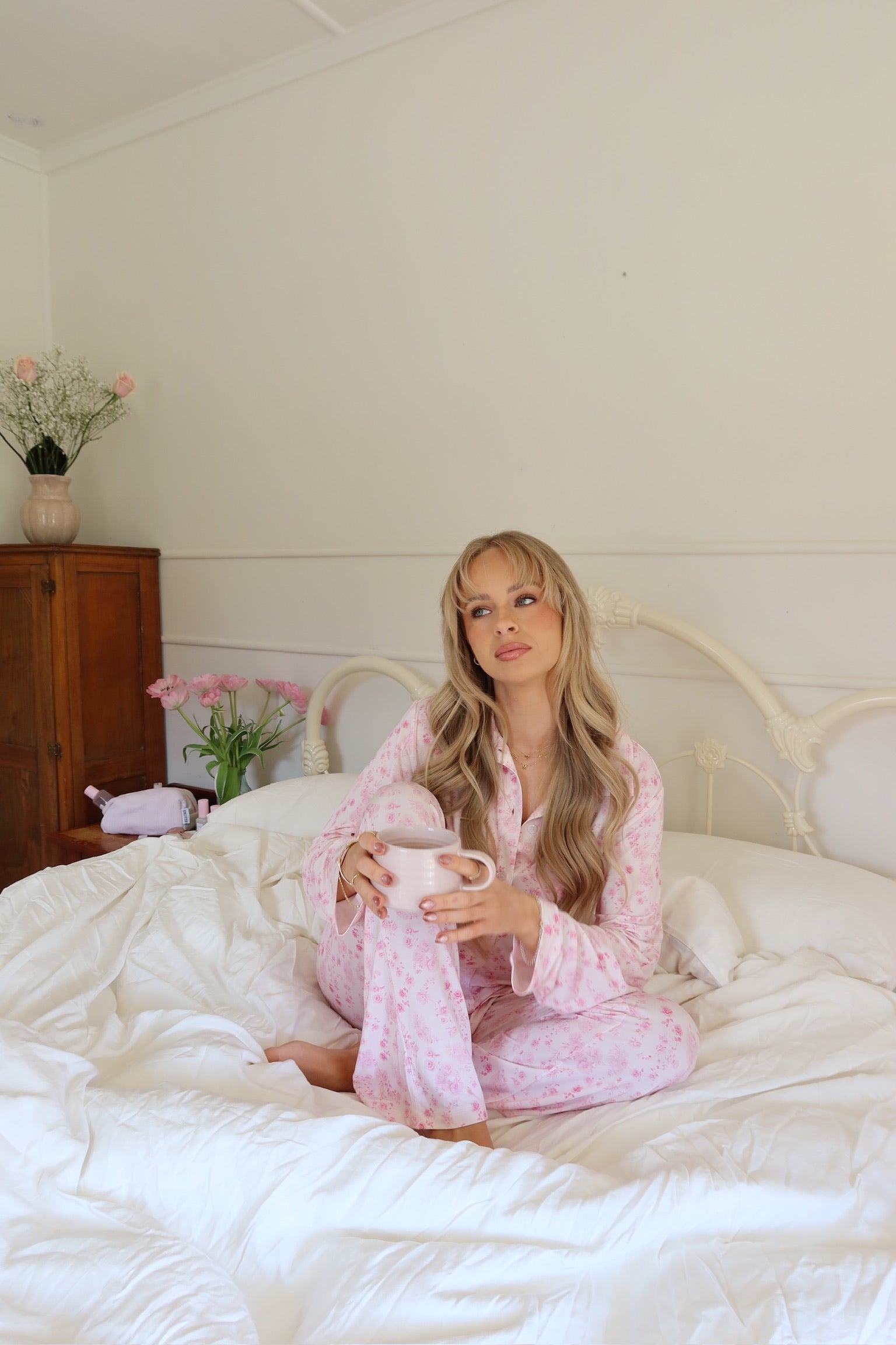 Our Maya Pants are the perfect soft girl essential. Soft, stretchy and made for slow days and sweet dreams. With a breezy fit and buttery-soft feel, they’re as comfy as they are cute. Pair them with the matching Maya Top for the full nostalgic pj moment.