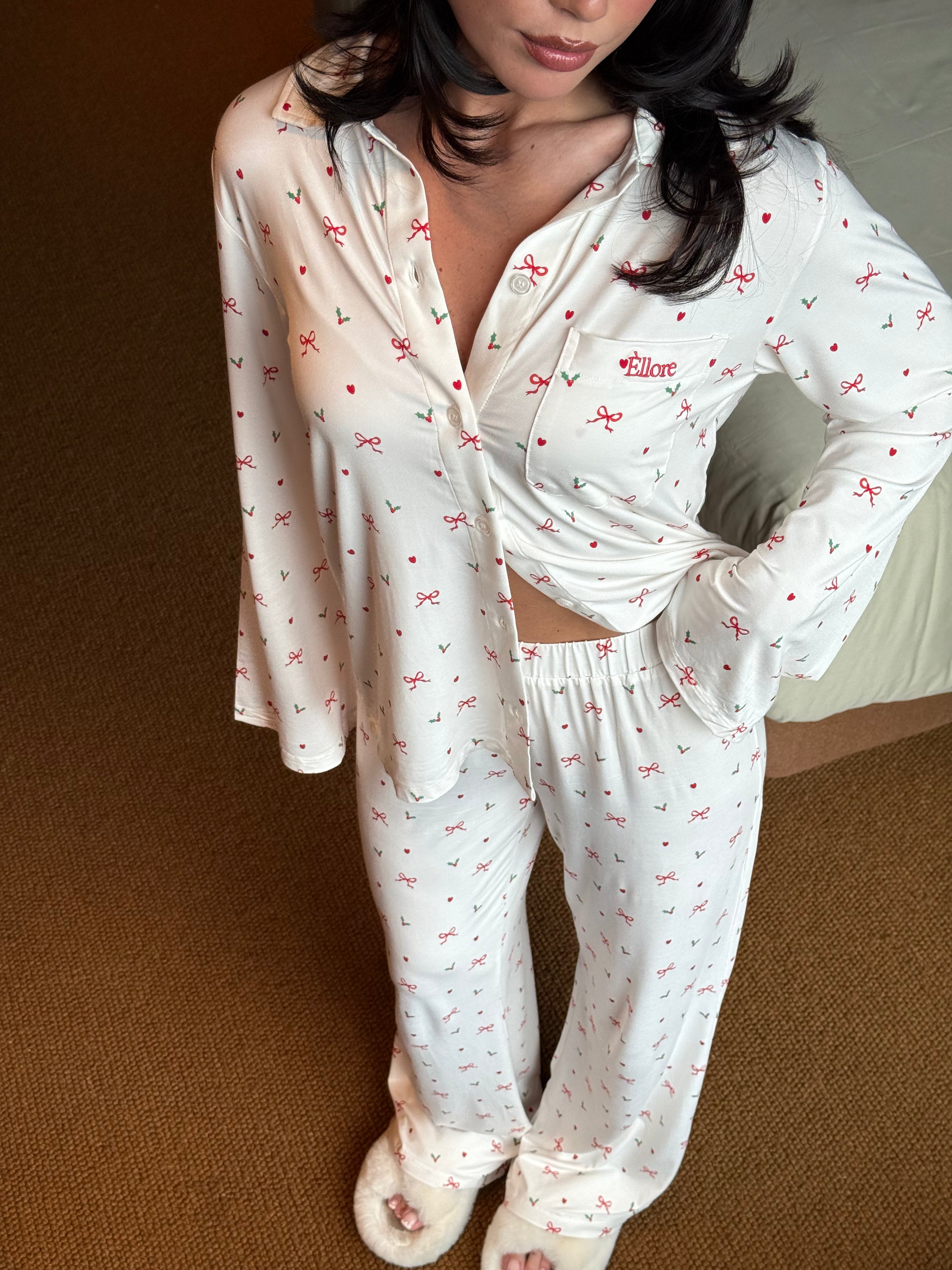 Our first-ever festive Pj that’s sure to take you back to the cozy nostalgia of childhood pjs with a creamy base and pops of the classic red and green festive colours. Designed with a breezy fit and the softest fabric, they're the perfect blend of style and comfort, designed to elevate your relaxation moments. Pair it with our matching Holly Pj Top for the full nostalgic look and feel.